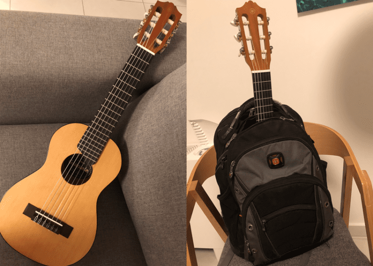 I love my nylon string travel guitar from Journey instruments. Full sized scale length with a detachable neck so that the entire thing fits in a backpack. Fits in the overhead on a plane so that (to my wife’s irritation) both my son and I can practice when on vacation.
