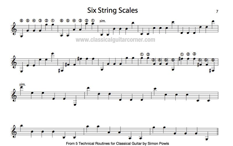 This exercise can be found in the book: 5 Technical Routines for Classical Guitar – Intermediate/Advanced