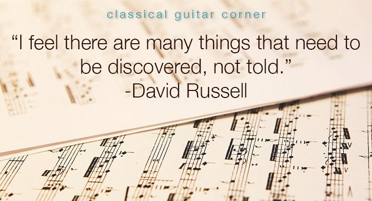 “I often notice students preoccupied with fingerings and not notes, much less sounds, and yet at the same time finding it difficult to immediately locate C sharp on the 4th string, say. Of course, if students do see me as Mr. Technique, then that can also reflect negatively on me too, because Mr. Technique isn’t usually also Mr. Music! But in the last five years or six years, there has been a very great acceleration in the awareness of some very basic musical facts by guitarists, and that’s a topic I would like to talk more about because so much is changing for the better. ”