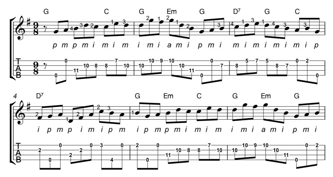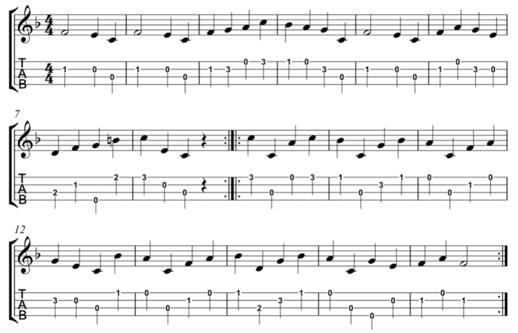 Here is an example of a piece that still fits in the range of the Low G ukulele but fingerings are changed to better serve the music and to aid in playability: