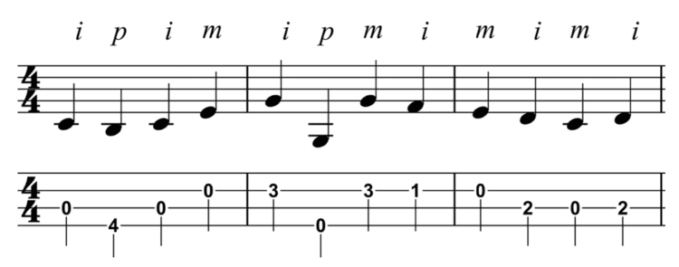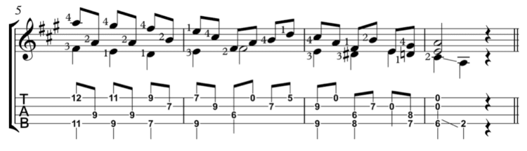 Guitar phrase and fingering: