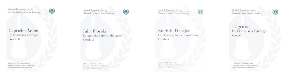 CGC Publishing has a variety of classical guitar sheet music and books that are available to the public. These books give you the opportunity to study the CGC Academy curriculum at home or with your teacher. You will find each book available as a physical print edition or a direct PDF download.