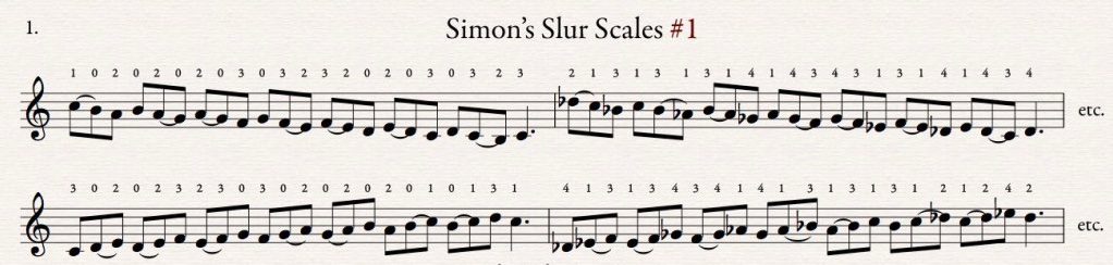 In a similar way of focusing on a very specific aspect of technique we can work on left hand pressure through “buzzing” scales:
